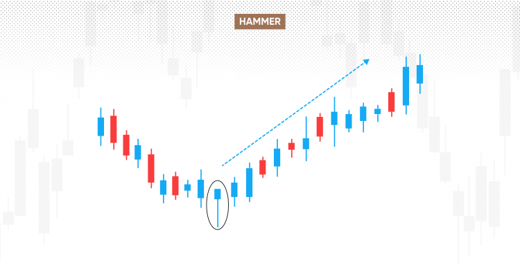 A hammer suggests that, during the time period, the price moved down and then made a recovery as more buyers stepped in following a period where sellers were more dominant. Often, it comes as a price makes a long-term turnaround, moving from a downward trend to an upward one.