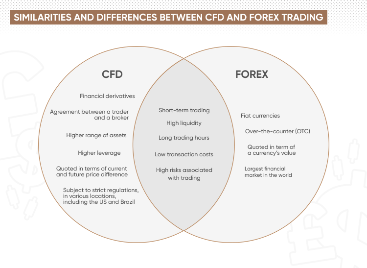Contracts for difference (CFDs) and foreign exchange (forex) are different in nature, yet there may be some overlaps in trading the two.