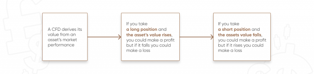 • Go long or short. You can get a CFD based on whether you think a market will go up or down