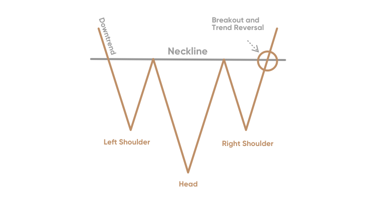 Conversely, when dealing with an inverse pattern, the opposite is true: measuring the vertical distance from the neckline down to the peak of the head gives you a rough idea of how far the price is likely to go upward past the neckline.