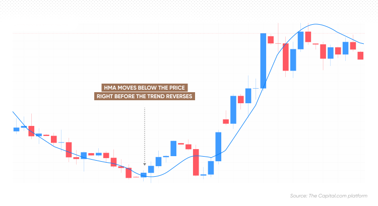 HMA may also be used for spotting trend reversals. When HMA moves above or below the price, it can signal a potential change in trend direction.