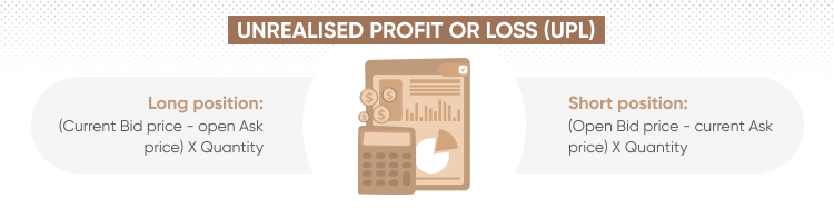 Your unrealised profit or loss (UPL) is calculated using the formula below.