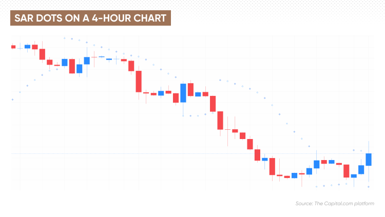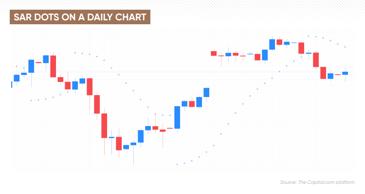 • Weakening trend: Dots are close to the price, potentially signalling a trend’s weakness.