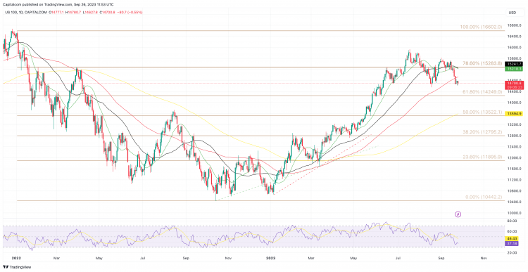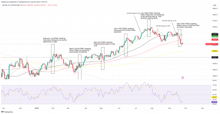The pullback in the US stock market has started to grab people’s attention as concerns about the economy’s future grow. Last week, the Federal Reserve (Fed) decided to leave its base rate unchanged at 5.5% – but the messaging around the decision clearly hints at a high chance that another rate hike may occur in the coming months if the data deems so.