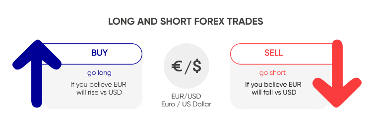 Long: for example, if you think the euro will rise against the dollar you can take a long position on the EUR/USD