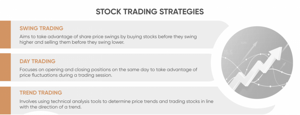 Stock trading strategy is your preferred approach to trading assets. It is important to have a clear strategy when deciding on your stock market trading before you put your money at risk.